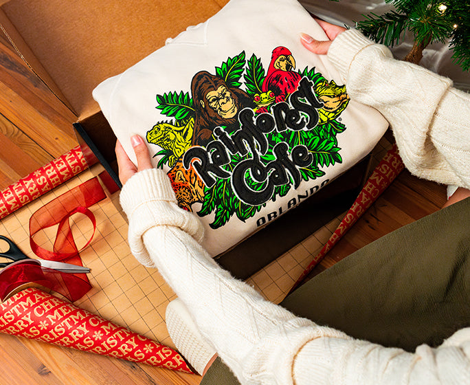Finished with the classic Rainforest Cafe logo, this standout style is crafted from a comfortable midweight cotton blend with a classic fit. Soft, breathable, and made for everyday wear, it’s the perfect mix of fun and adventure for any rainforest fan.
